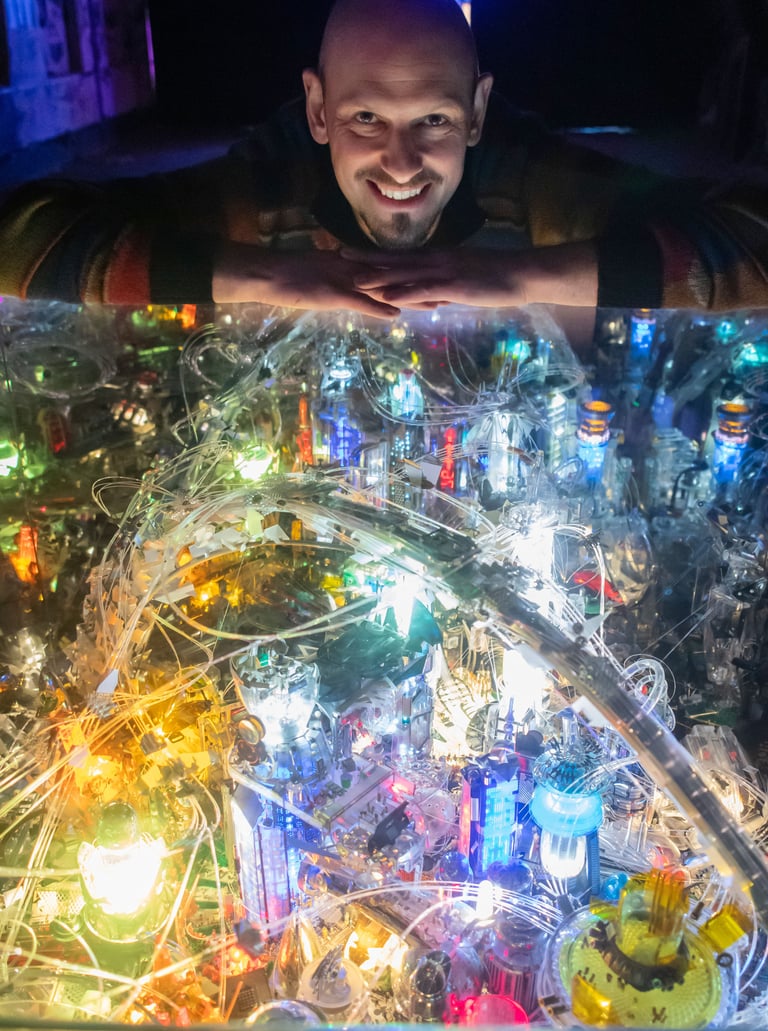 Oskar, the artist and founder, built this platform from a lifelong passion for technology, art, and human progress. Every detail of the physical piece was conceived while studying the very ideas that now shape the digital Metropolis.